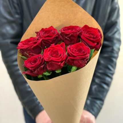 Букет 7 красных роз в крафте