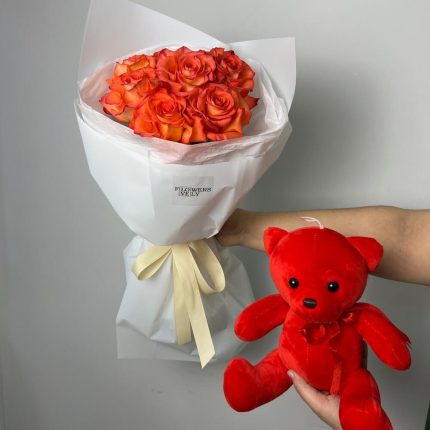 Букет роз + мишка