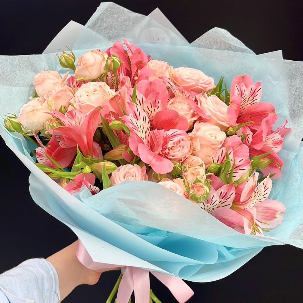 Гвоздики, Кустовые розы, Лизиантусы, Пионовидные розы, Розы