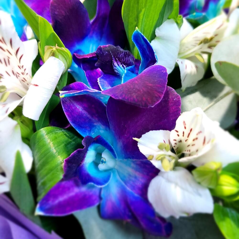 Альстромерия – 4 шт.Эвкалипт – 3 шт.орхидея – 8 шт.Упаковка дизайнерская – 1 шт.