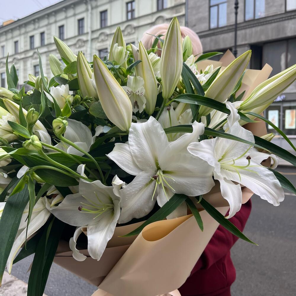 ЮЛИЯ огромный премиальный авторский букет из лилий, фрезий и альстромерии
