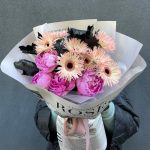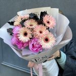 Букет з гербери та півоній