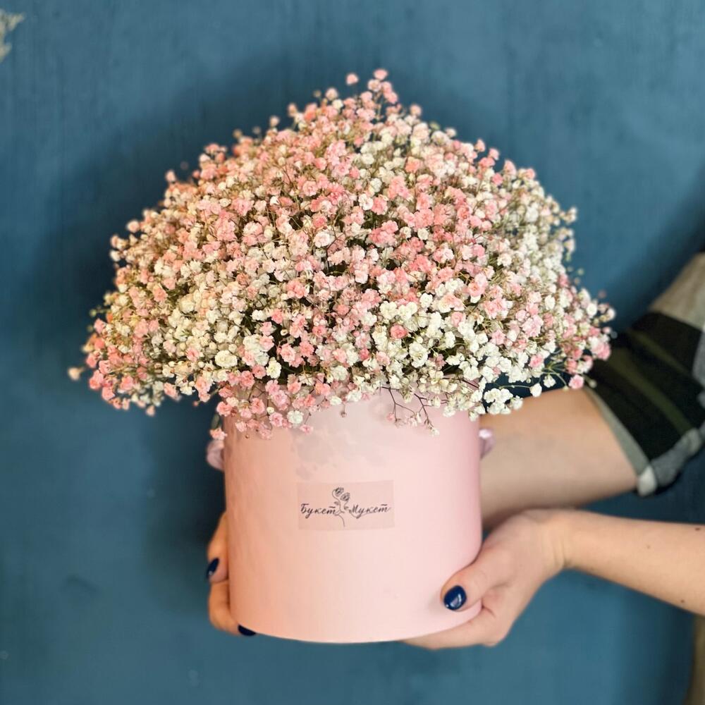 Гипсофила – 7 шт.Коробка шляпная – 1 шт.Оазис флористический – 1 шт.