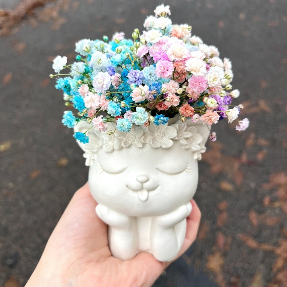 Кому подарить такую милоту?) Это кашпо с разноцветной гипсофилой станет оригинальным подарком для вашей близкой подруги или девушки, сестры или мамы.