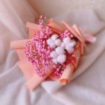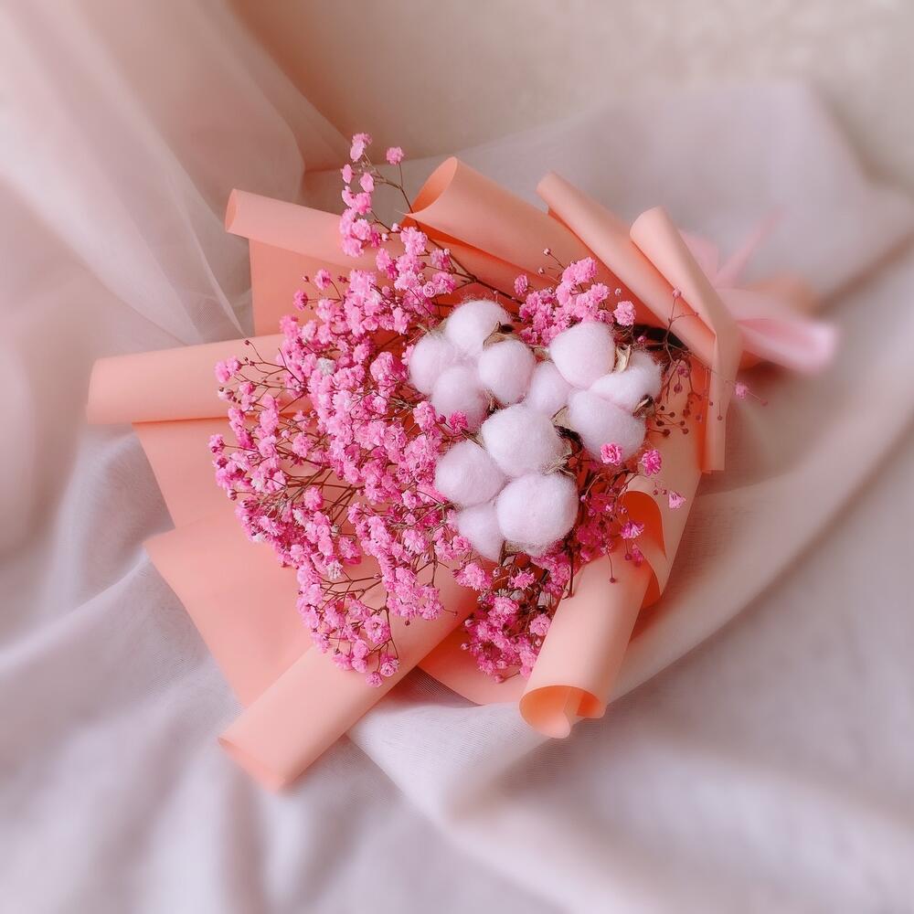 Хлопок – 3 шт.Лента атласная – 1 шт.Гипсофила розовая – 1 шт.Дизайнерская упаковка – 1 шт.