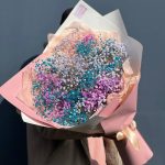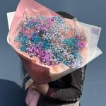 Лента атласная – 1 шт. Упаковка дизайнерская – 8 шт. гипсофила радужная голландская – 10 шт.