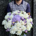Букет из гортензии, гвоздик и пионовидных роз