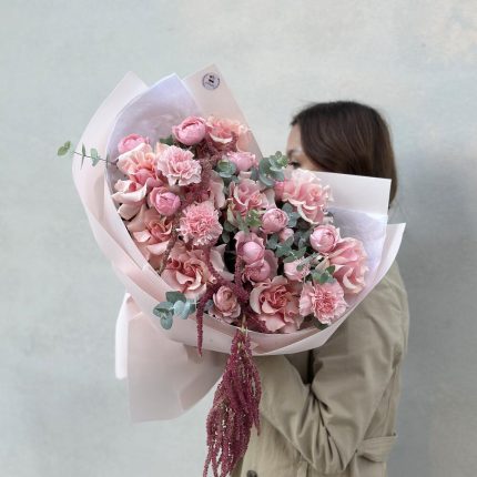 Гвоздики, Кустовые розы, Лизиантусы, Пионовидные розы, Розы