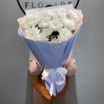 Моно букет из белой кустовой хризантемы в оформлении