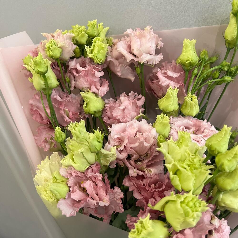 эустома алиса пинк – 7 шт.Упаковка дизайнерская – 1 шт.Атласная лента – 1 шт.