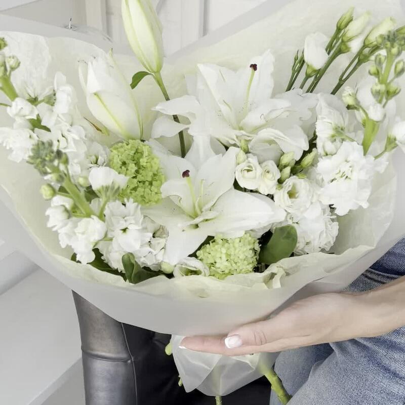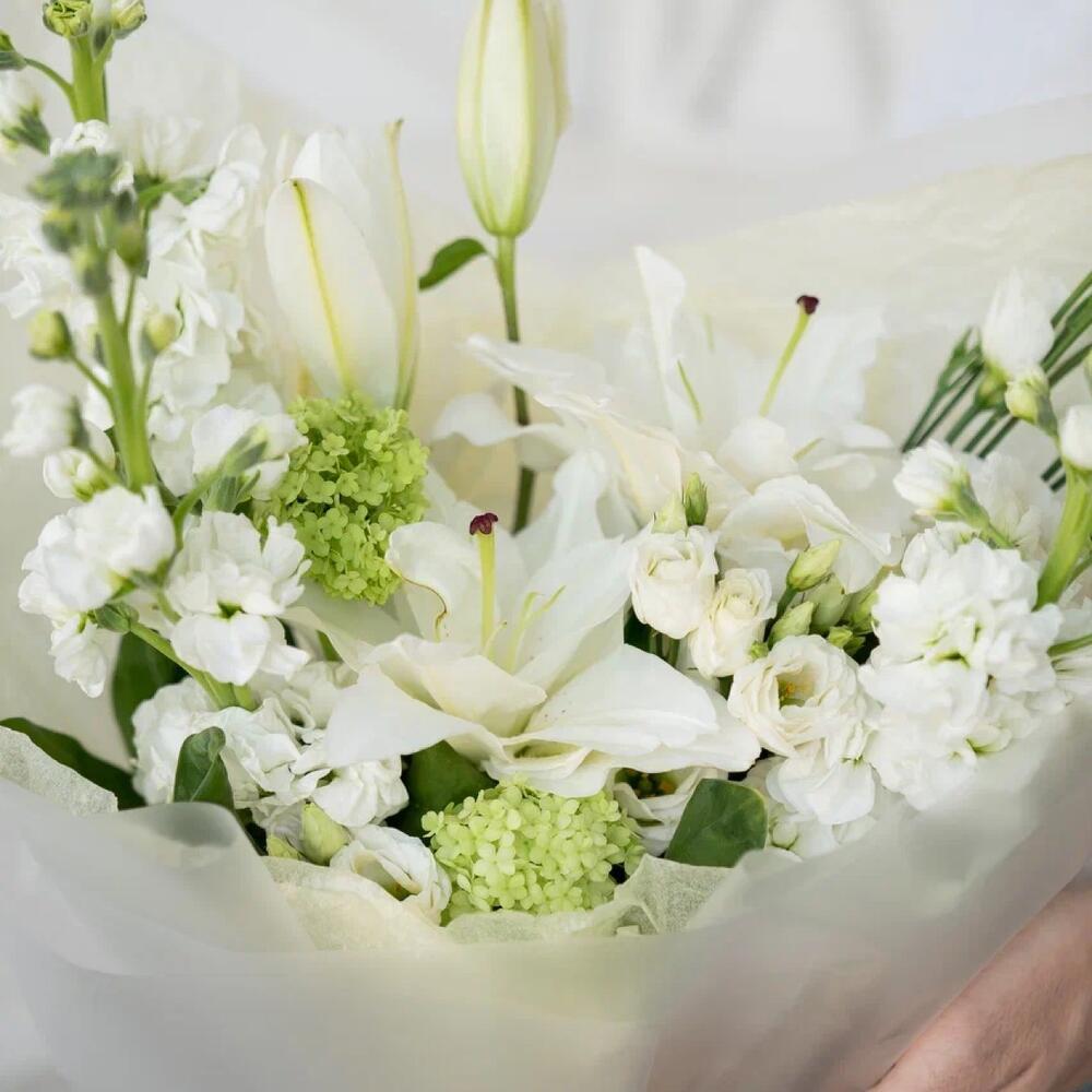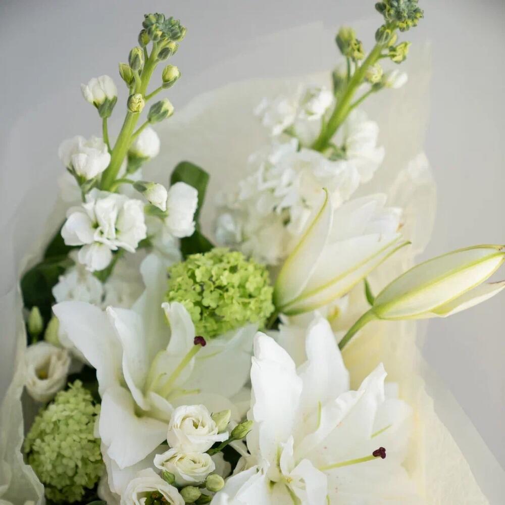 Белоснежный букет с лилией и маттиолой