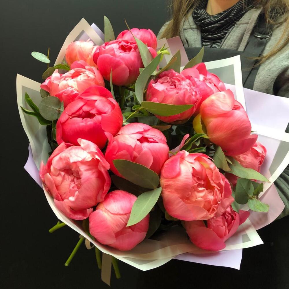 15 пионов с эвкалиптом