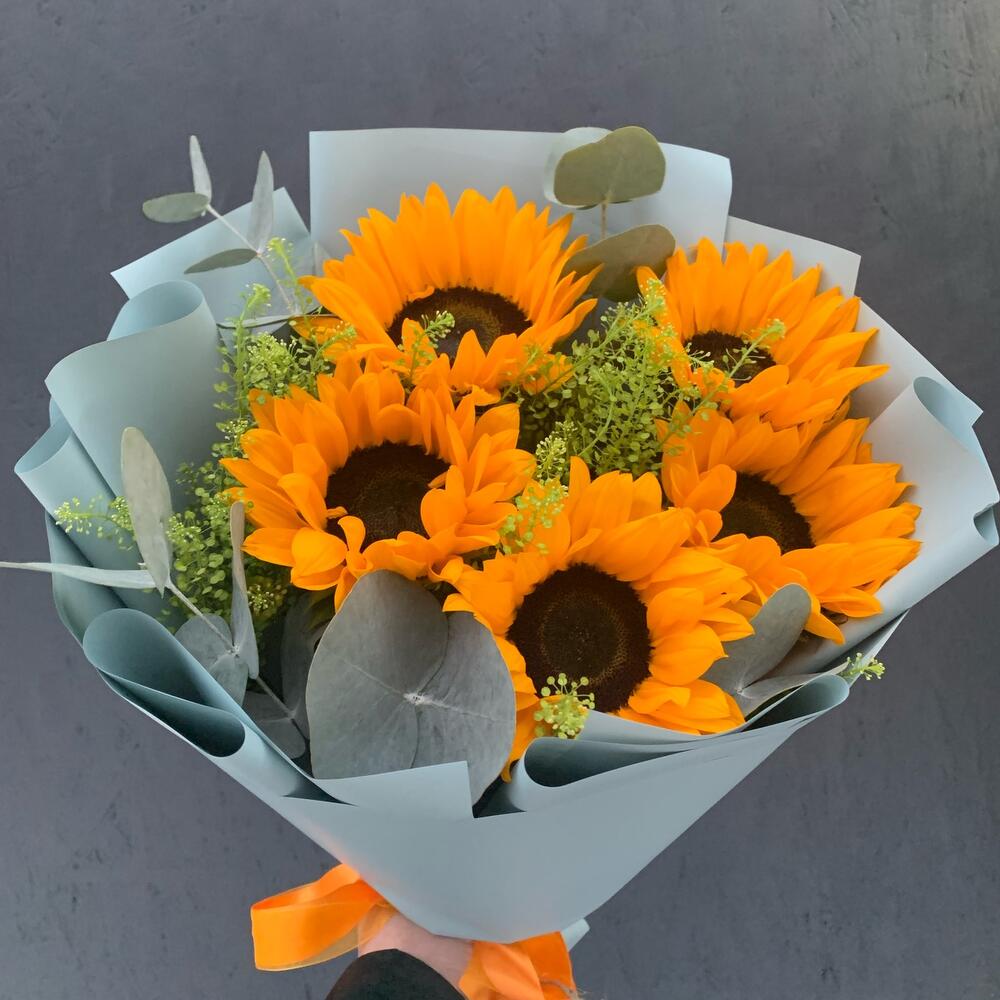 Подсолнух – 5 шт.Тласпи – 1 шт.Фисташка – 2 шт.Эвкалипт – 2 шт.Упаковка дизайнерская – 2 шт.