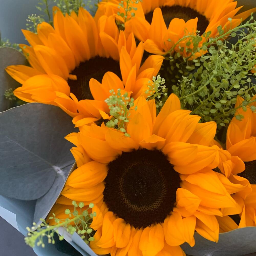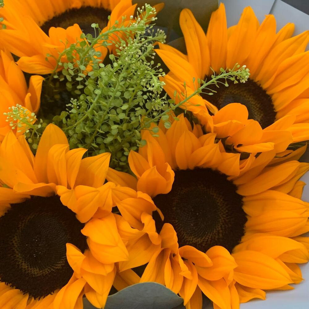 Букет из подсолнухов, тиласпии и эвкалипта Винсент