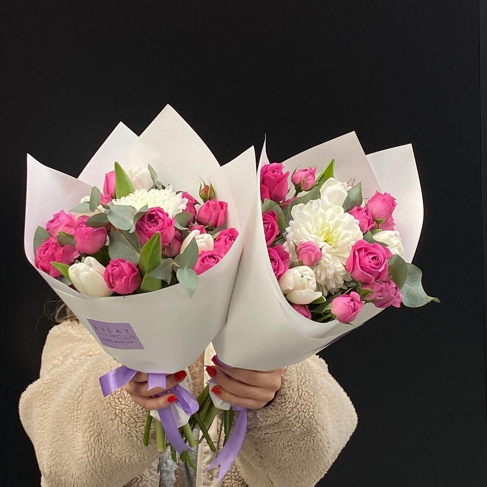Категорий: Кустовые розы, Розы, Тюльпаны, Хризантемы, Хризантемы кустовые, Эвкалипт