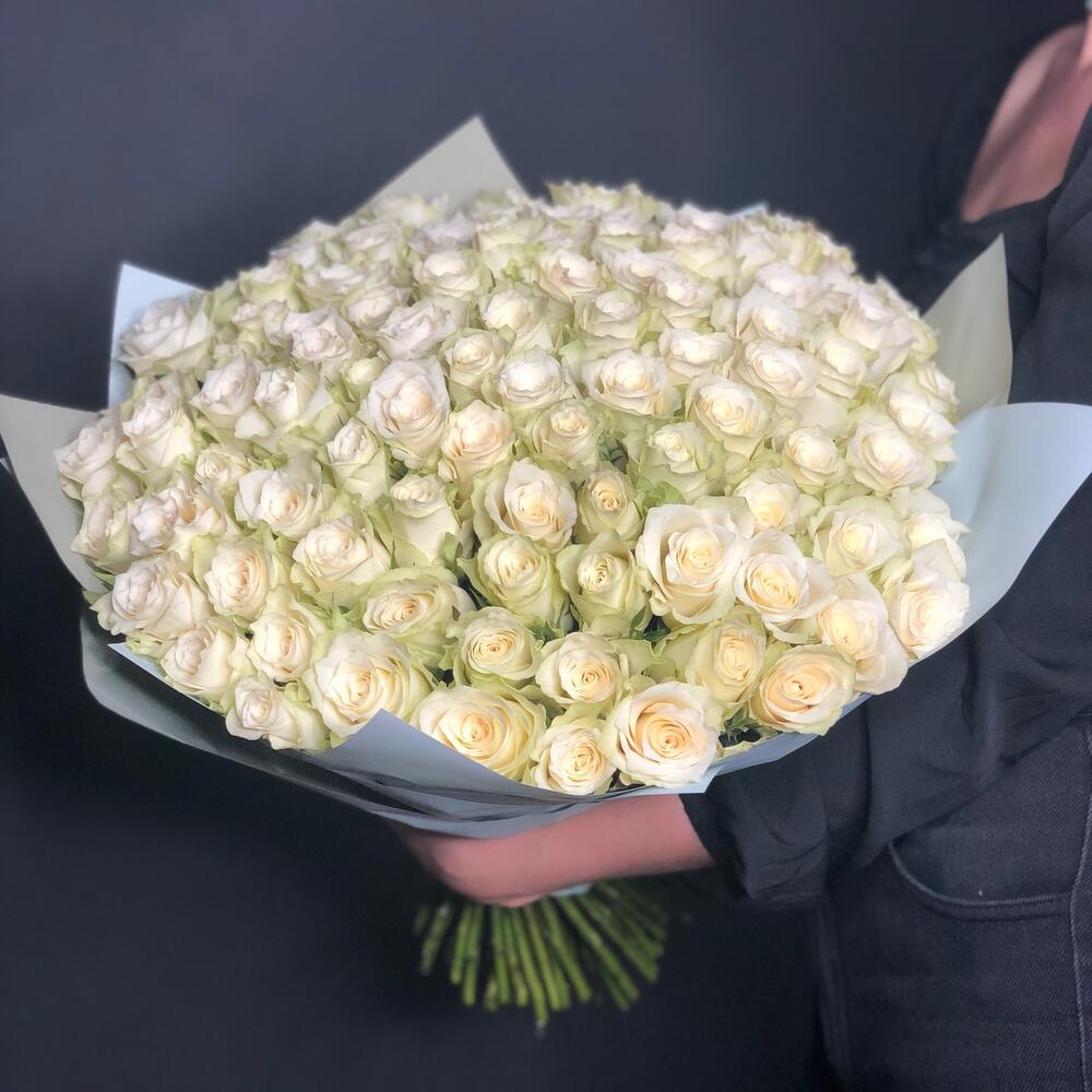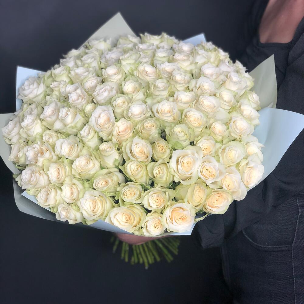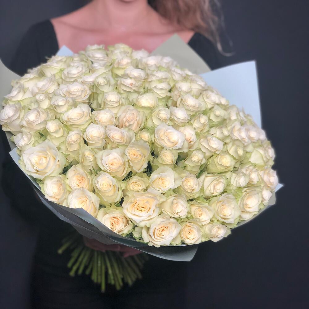 Роскошный букет из 101 красной розы. Букет 158 ALMOND ROSES
