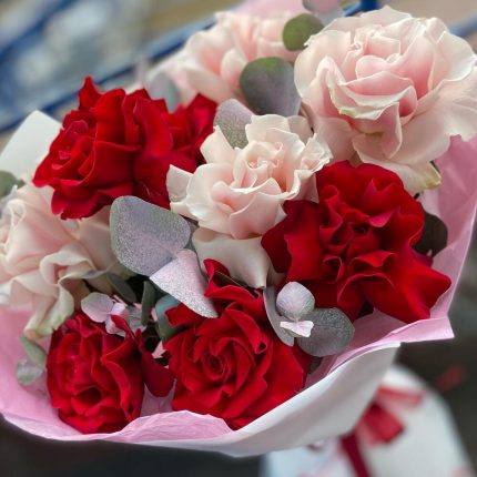Букет из французских роз с эвкалиптом