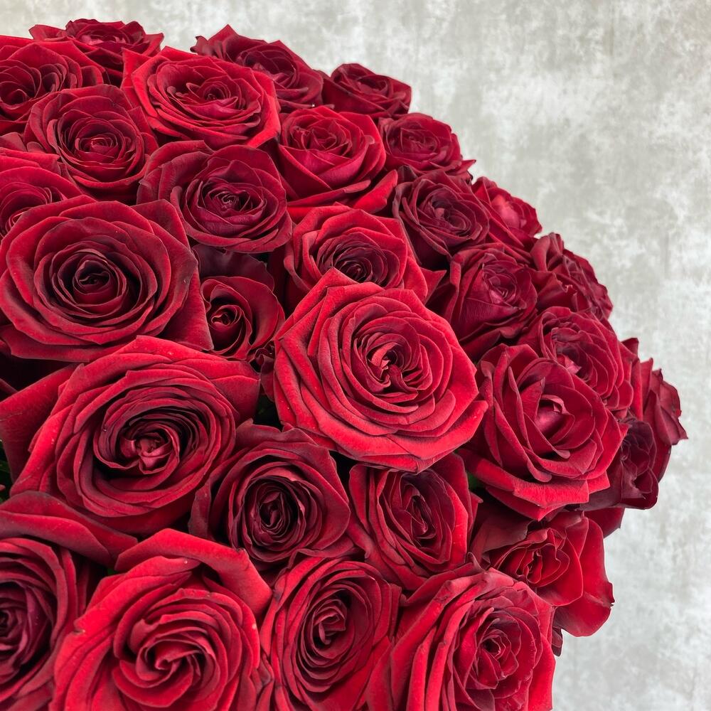 35 красных роз 70 см под ленту