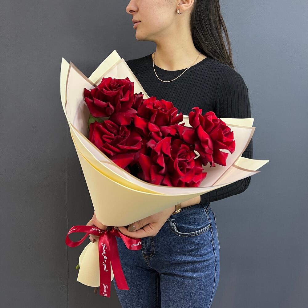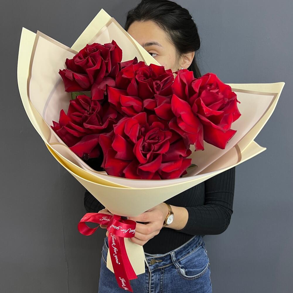 Атласная лента – 1 шт.Французская роза – 5 шт.Дизайнерская упаковка – 1 шт.