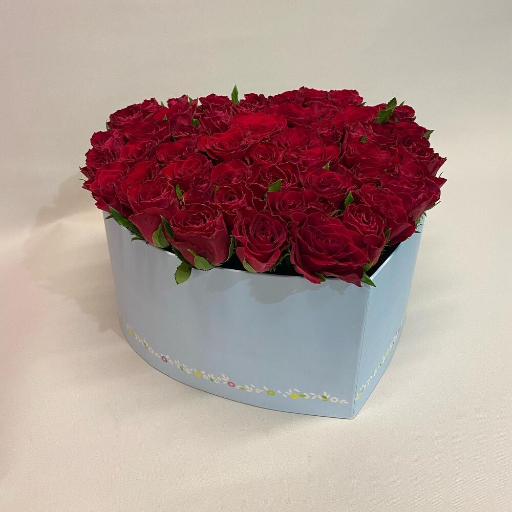 Роза – 51 шт.Коробка сердце – 1 шт.Оазис флористический – 2 шт.