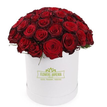 101 white, yellow, orange, red roses in a box. The size is 30×35 cm.