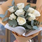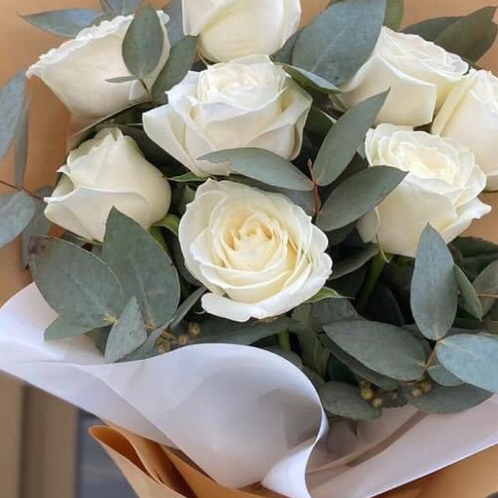 Эвкалипт – 3 шт. розы белые – 9 шт.