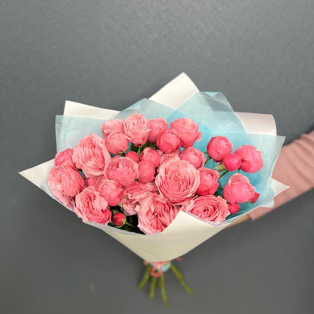 Тишью – 2 шт.Роза пионовидная кустовая – 7 шт.Пленка матовая – 2 шт.