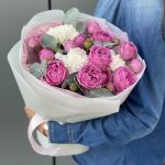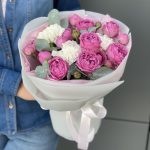 Букет Лилас из кустовых пионовидных роз и диантуса
