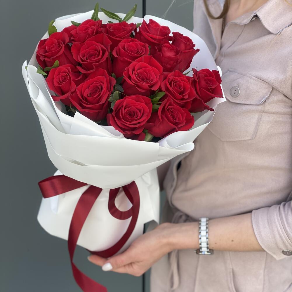 Метки: 15 роз, Красные розы, от 3000 до 4000 руб, Роза 50 см