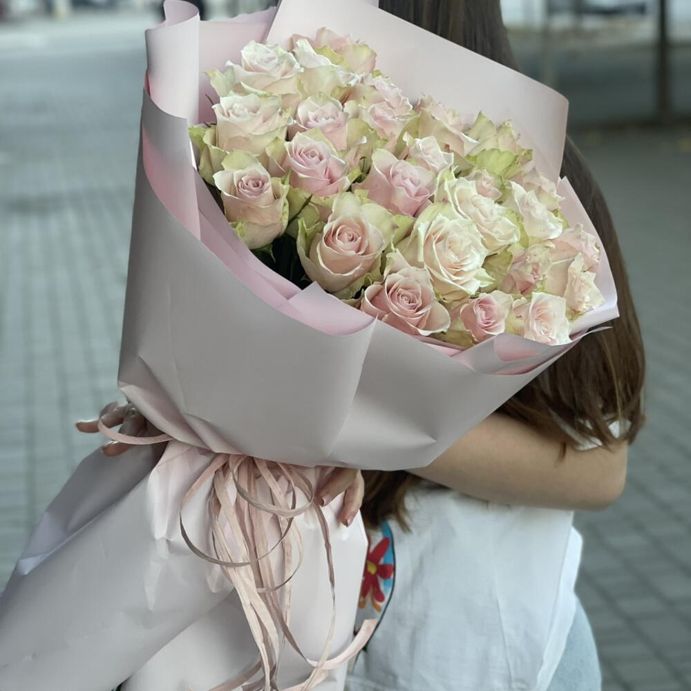 Метки: 25 роз, На свадьбу, от 5000 руб, Роза 60 см, Розовые розы