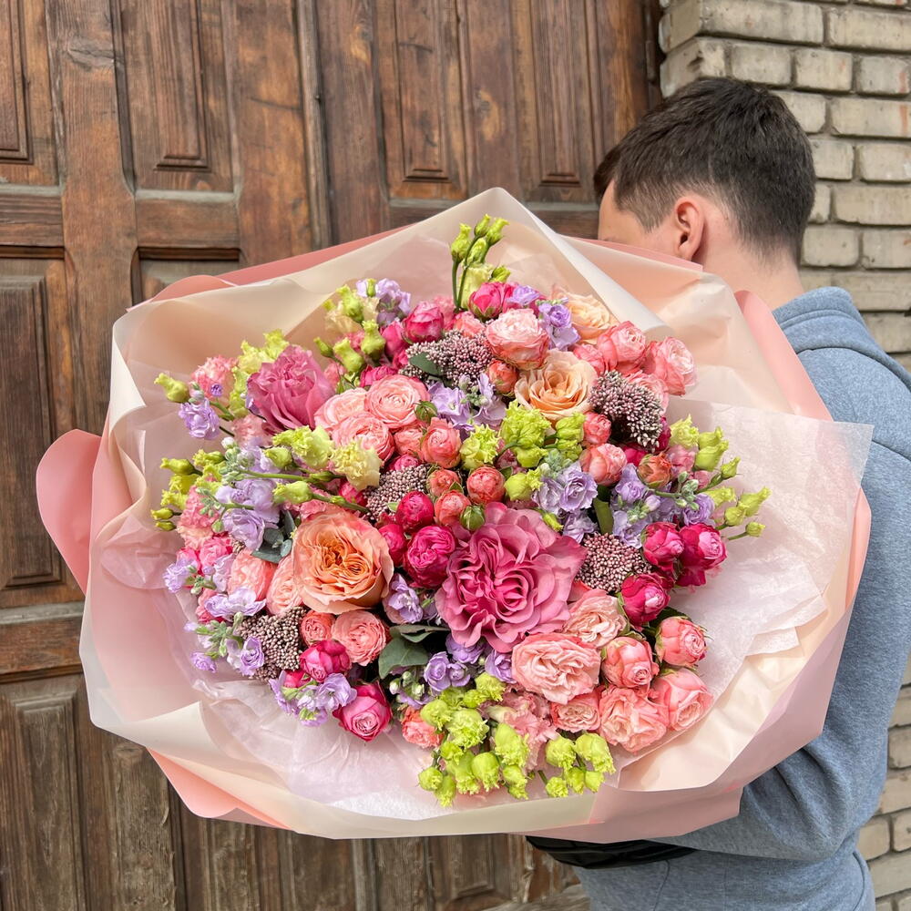 Гвоздики, Лизиантусы, Розы, Тюльпаны
