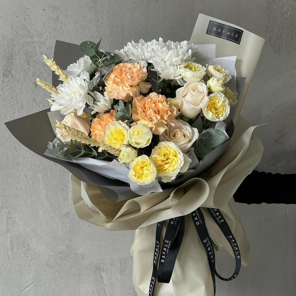 Все любимые цветы в одном букете – голландские розы, хризантемы и розы SPRAY в букете «EURO