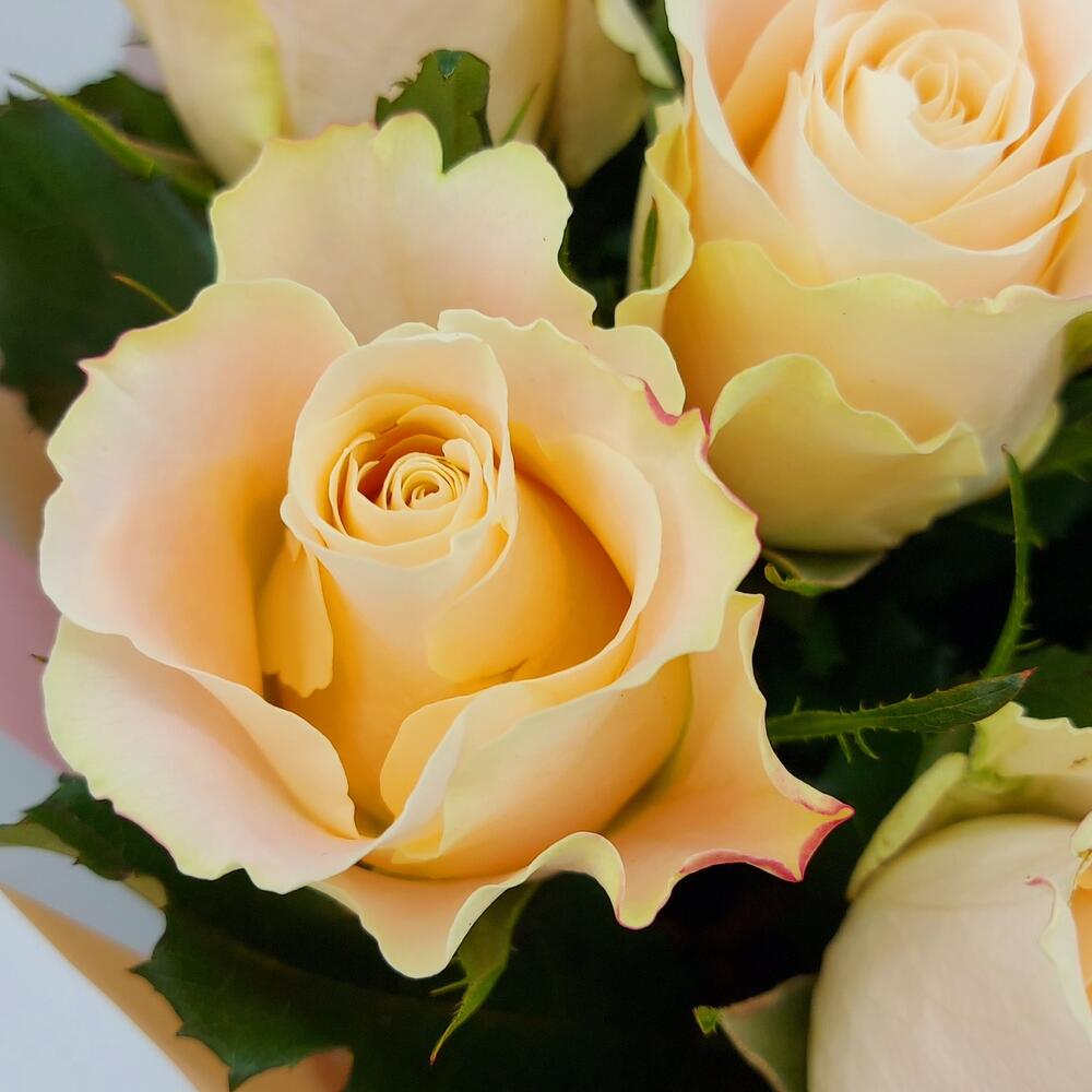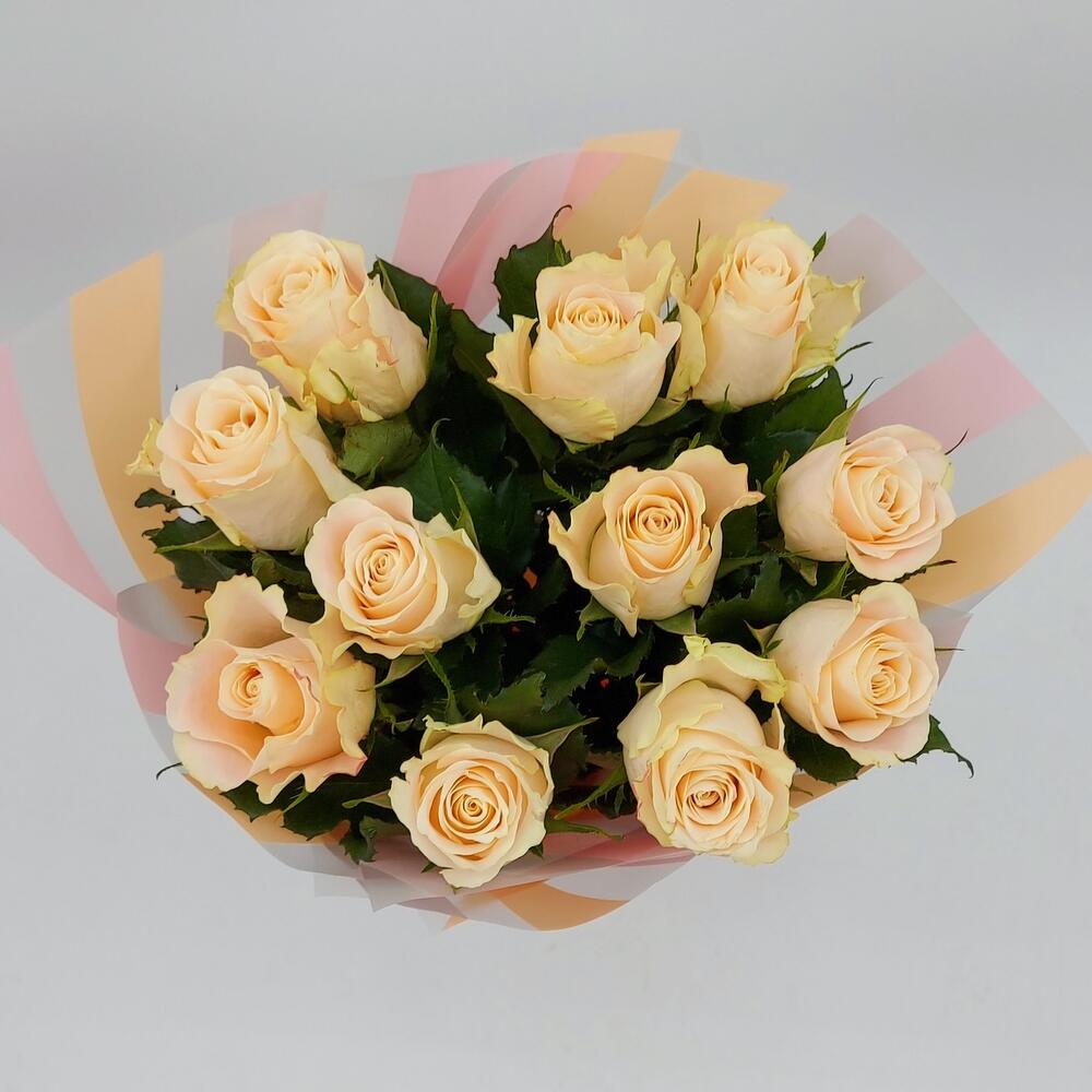 Нежные кремовые розы в стильном монобукете. Такой букет всегда уместен и подойдёт для любого повода: День Рождения, именины, годовщина свадьбы, рождение ребенка, 8 марта, День Святого Валентина, выпускной и т.д. Можно вручить маме, сестре, подруге, коллеге, учителю, любимой.