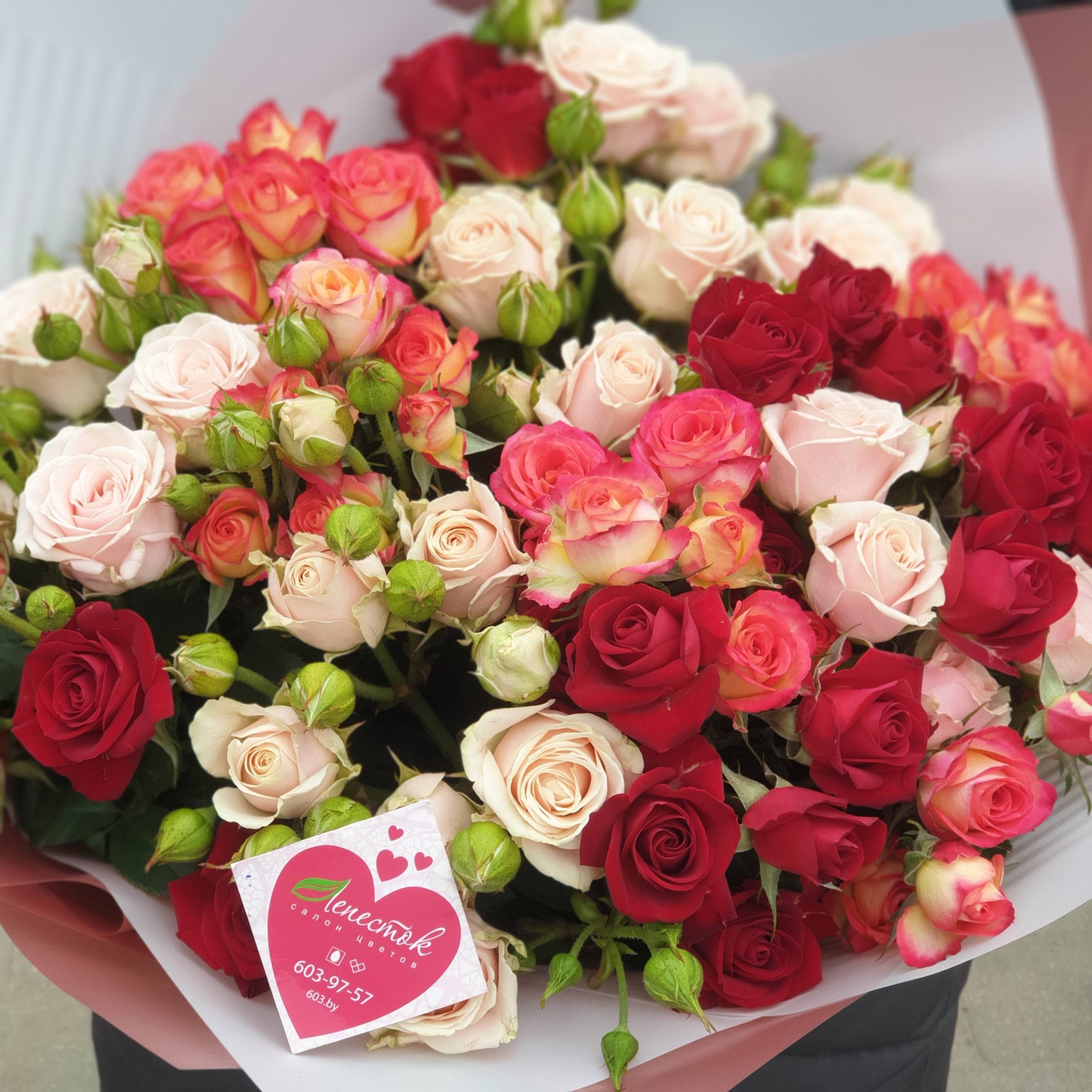 Гвоздики, Кустовые розы, Лизиантусы, Пионовидные розы, Розы