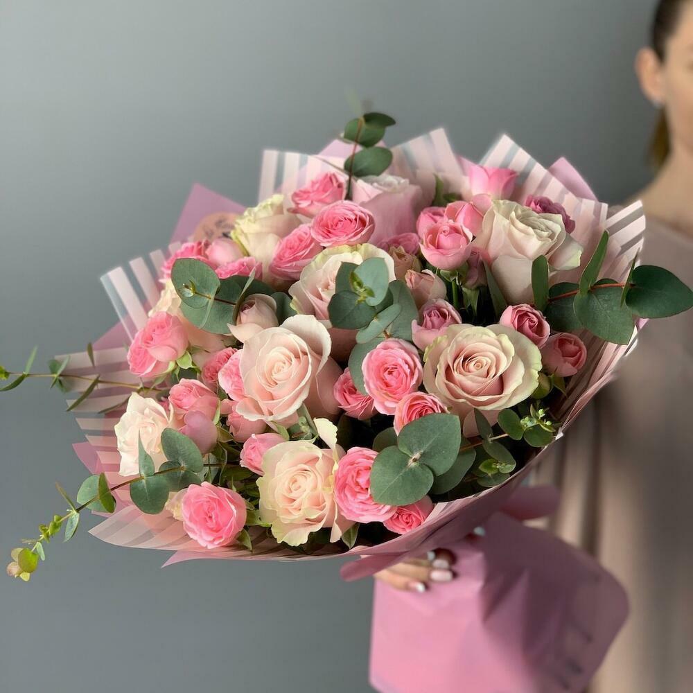 Гвоздики, Кустовые розы, Лизиантусы, Пионовидные розы, Розы