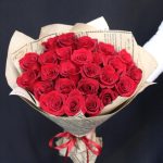 Роза Эксплорер – 25 шт.Крафт дизайнерский – 2 шт.Лента атласная – 1 шт.