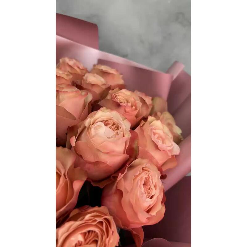 15 пионовидных кустовых роз монобукет