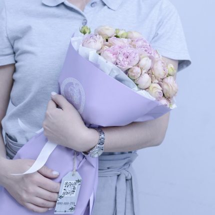 Букет нежный микс с эвкалиптом и пионовидными розами