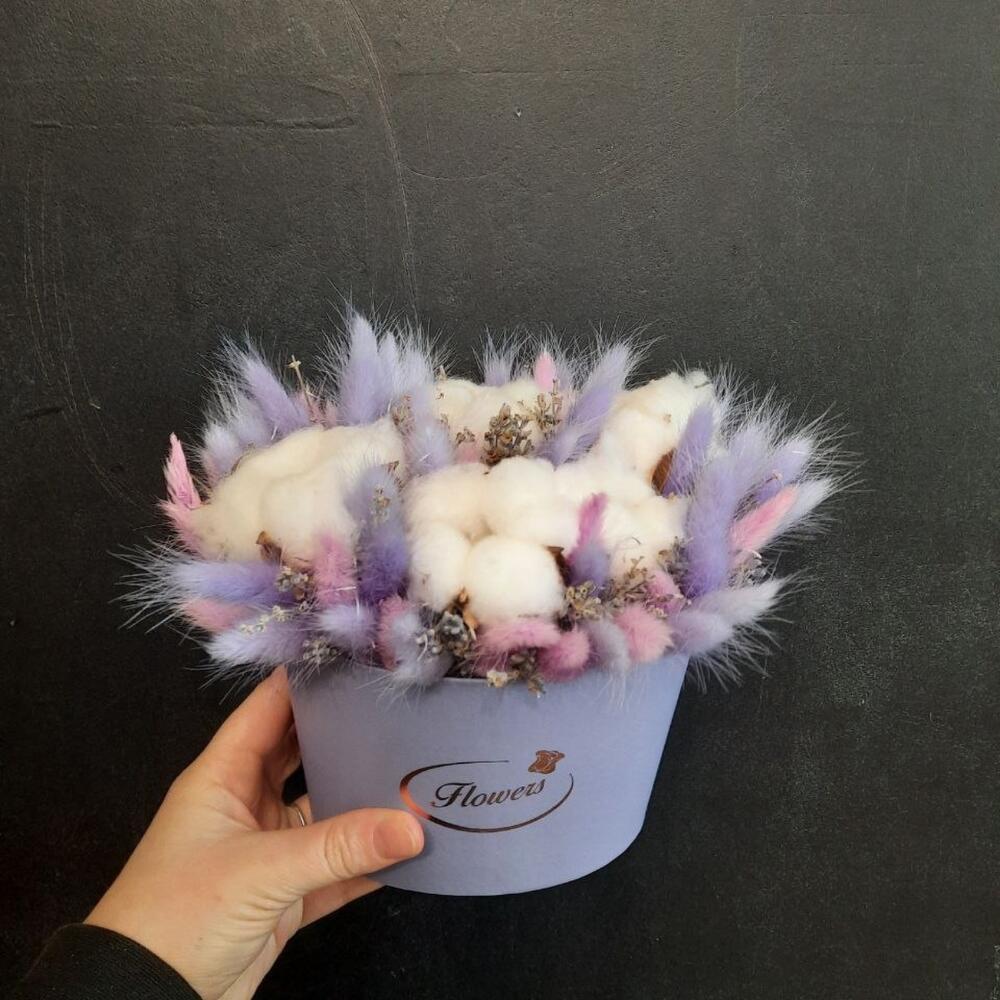 Хлопок – 5 шт.Коробка – 1 шт.Лагурус (сухоцвет) – 70 шт.
