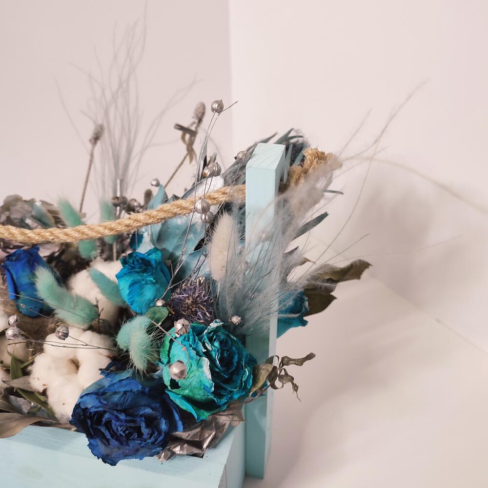 Необычная композиция сухоцветов в голубых оттенках будет очень долго радовать вас и ваших близких.