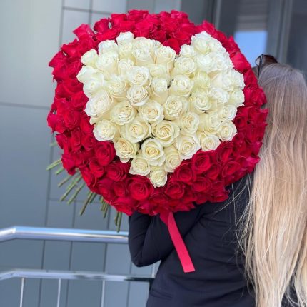 Букет из 151 белой и красной розы