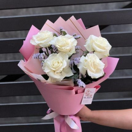 Букет из 5 французских роз с зеленью