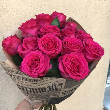 Яркий букет из 15 малиновых роз