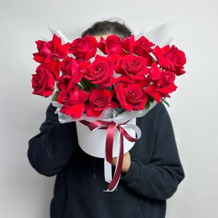 13 красных роз в коробке